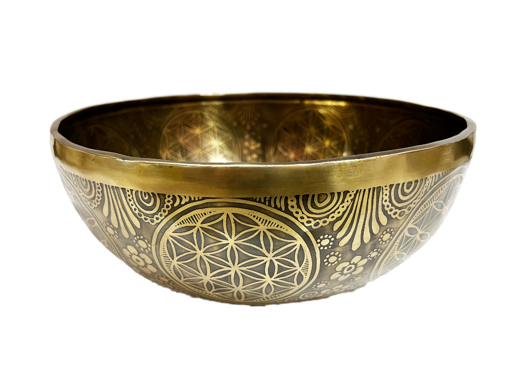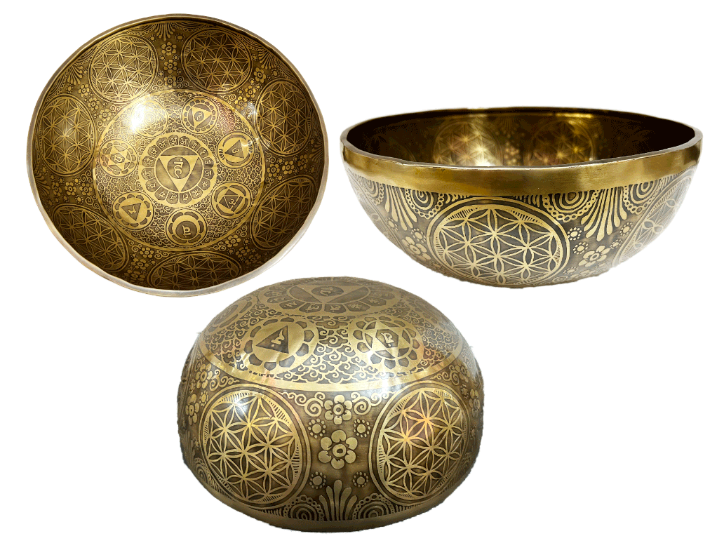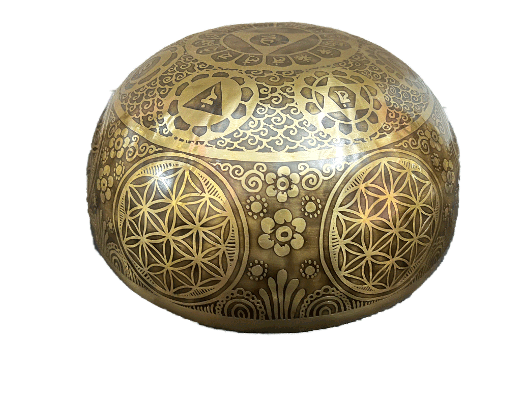 ENGRAVING & CARVING SINGING BOWL > Chakra & Flower Of Life Engraving