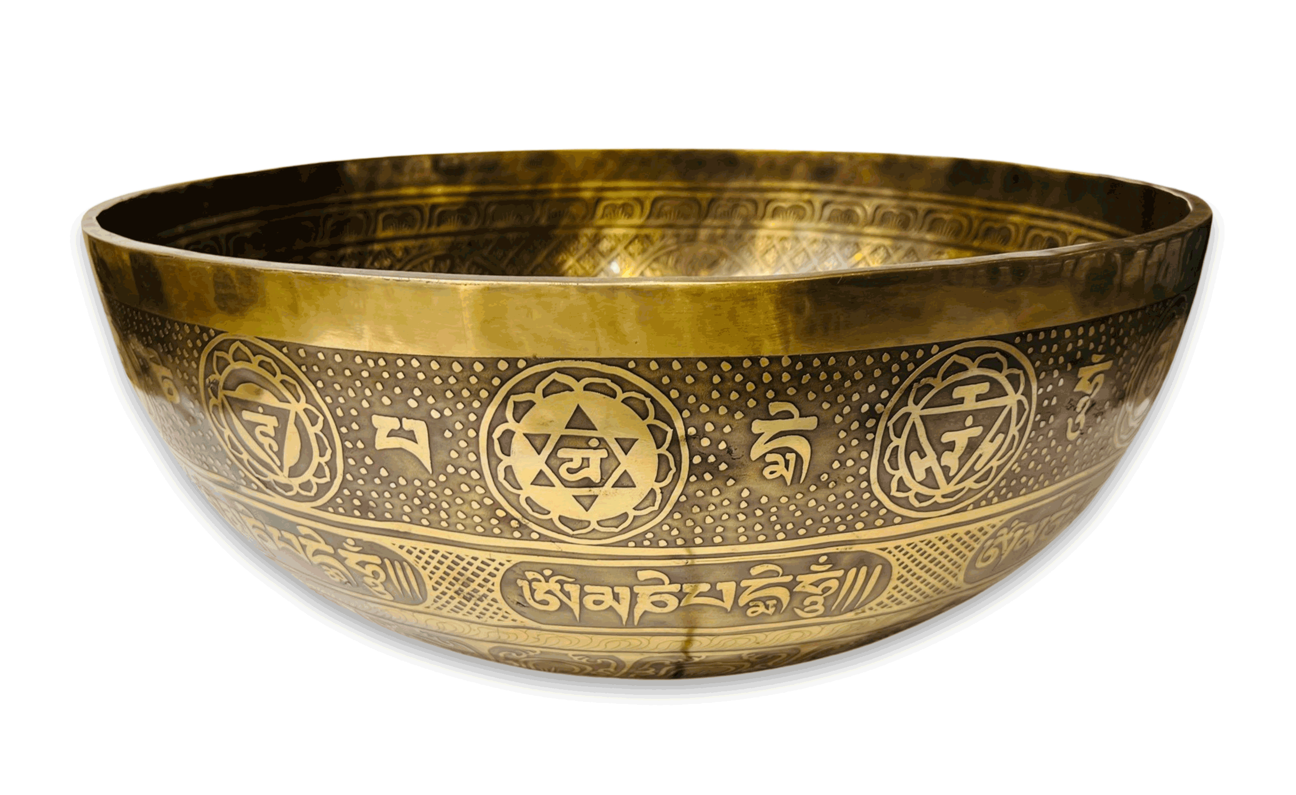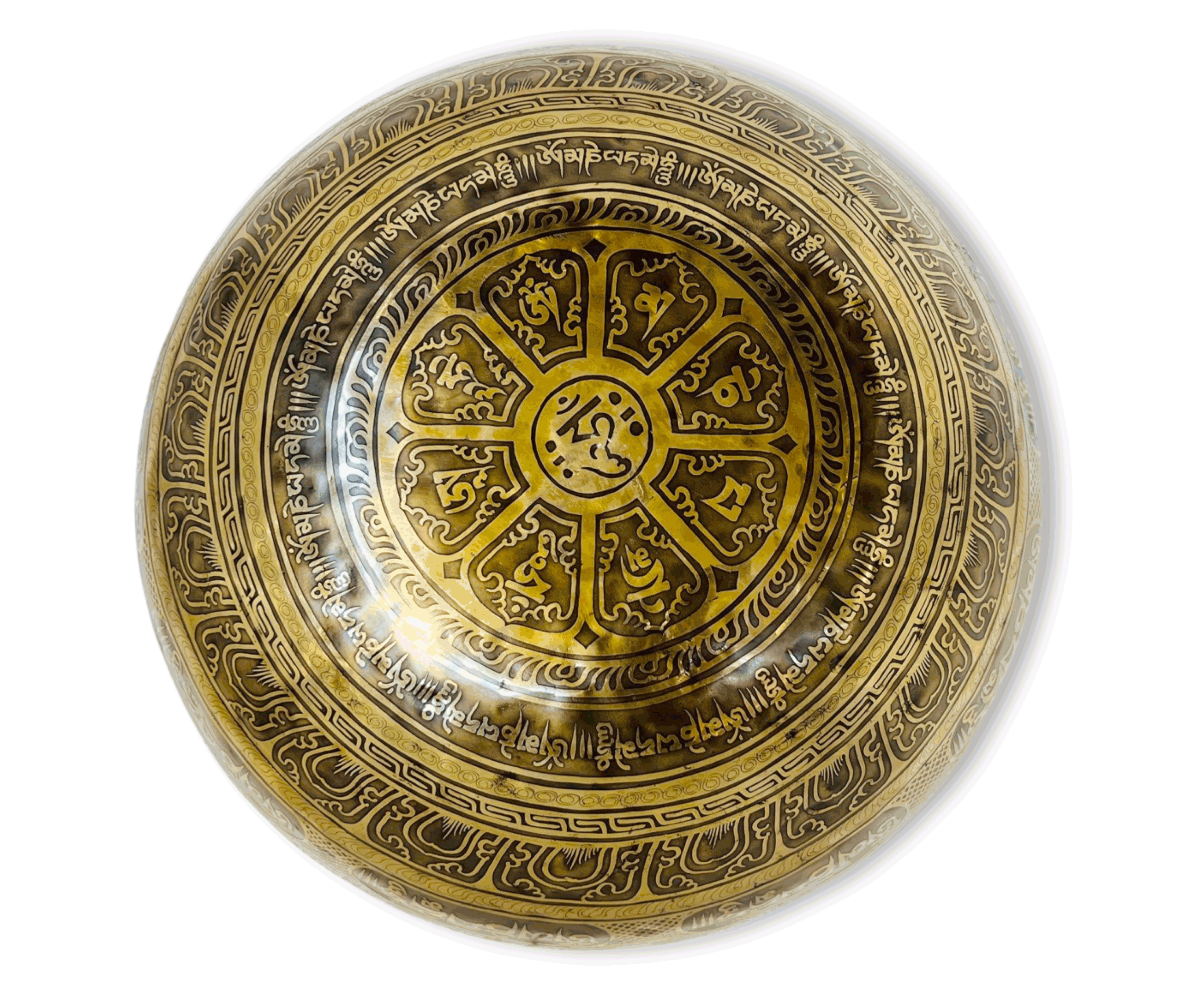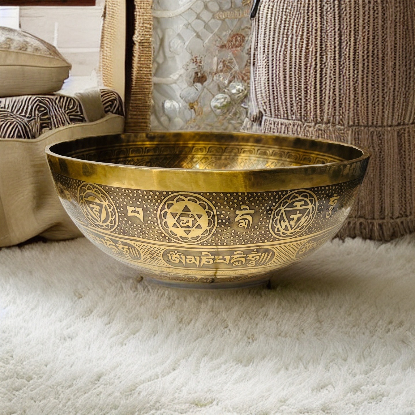 Hand Made Flower of life ,OMM & Yoga Engraving Singing Bowl Description