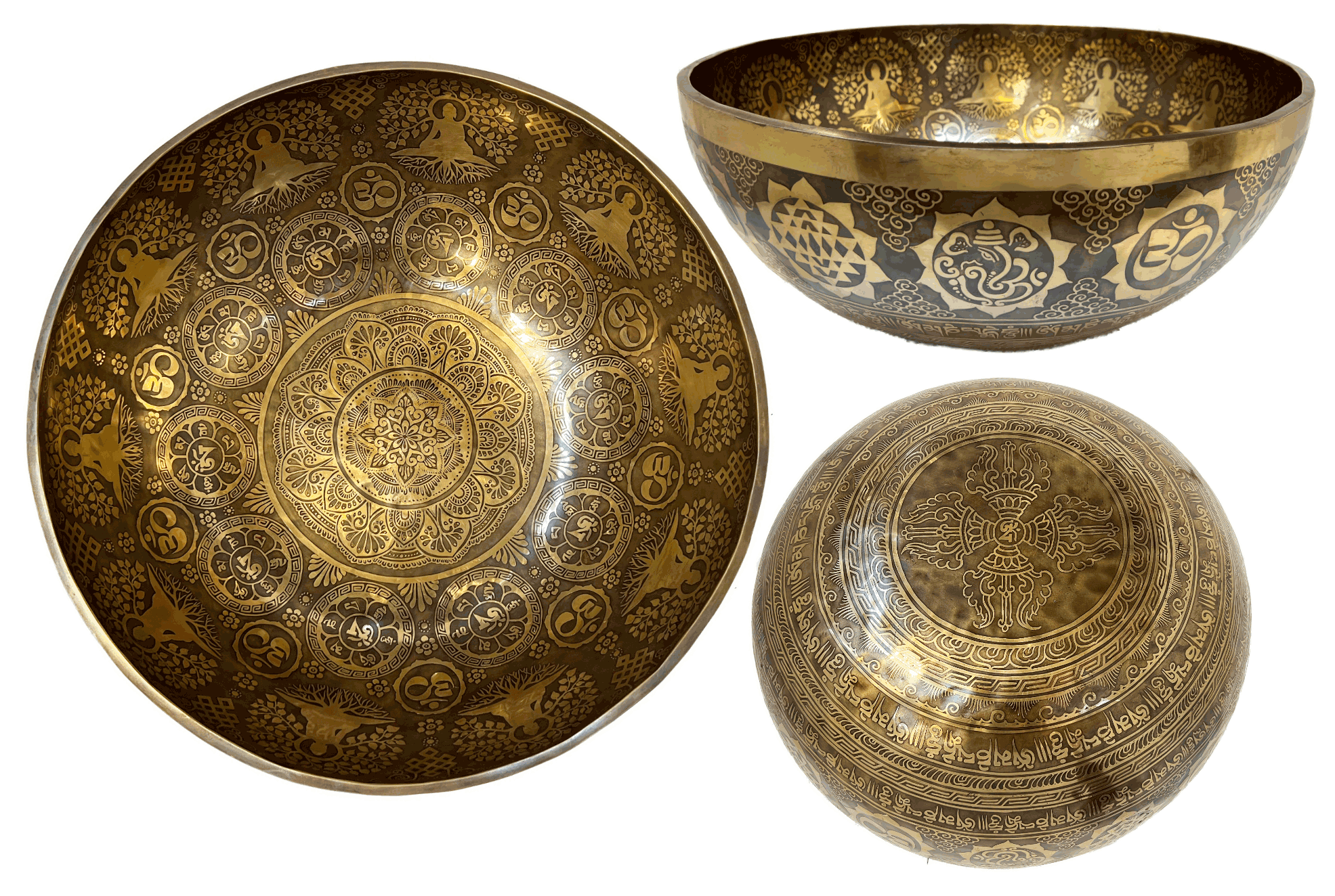 Hand Made Tree of Buddha Engraved Singing Bowls are used for deep meditation, Yoga. Relaxing And also be used for a full-body Meditation,