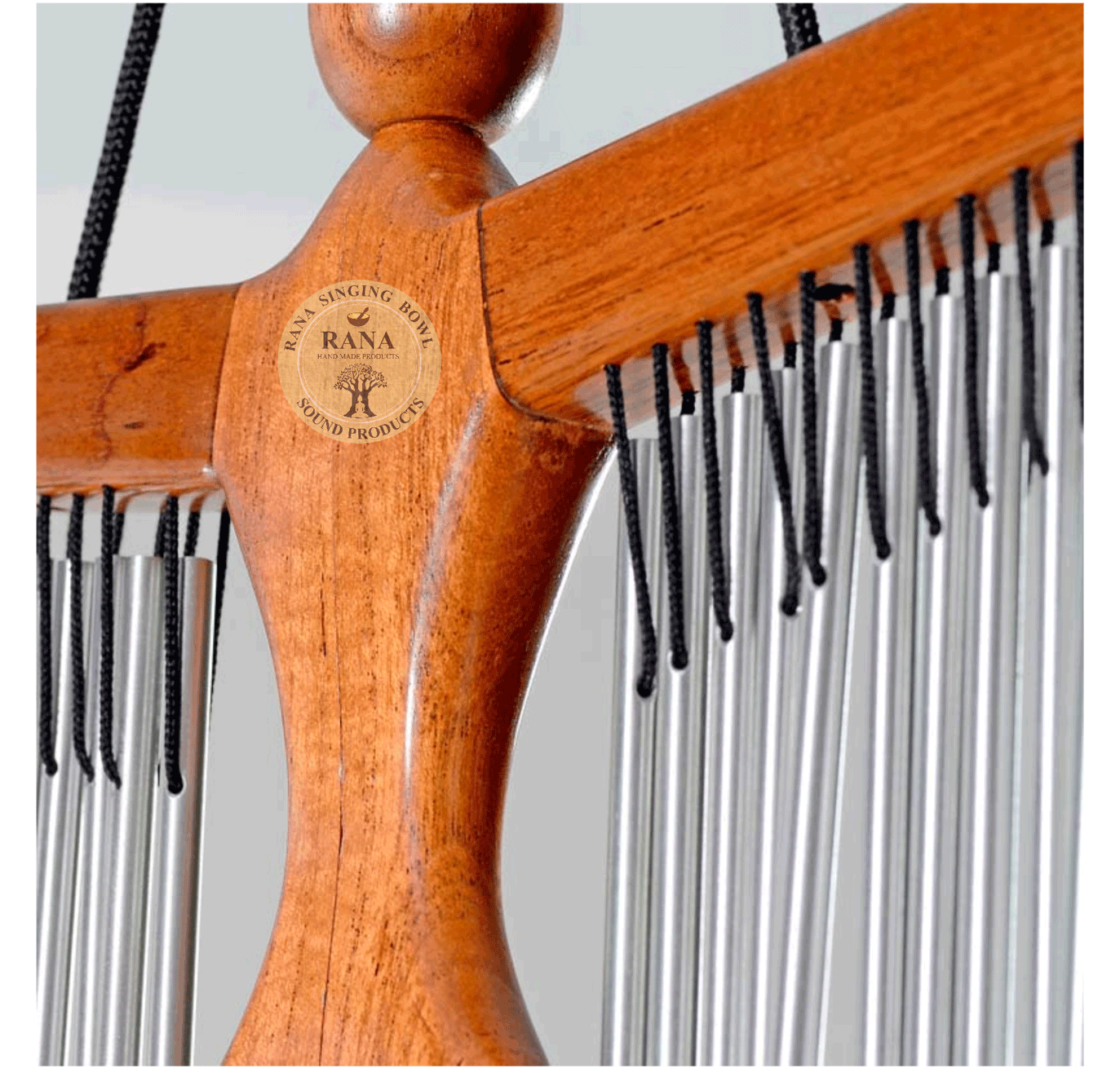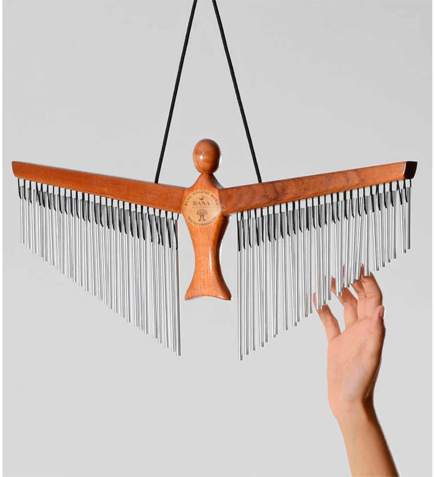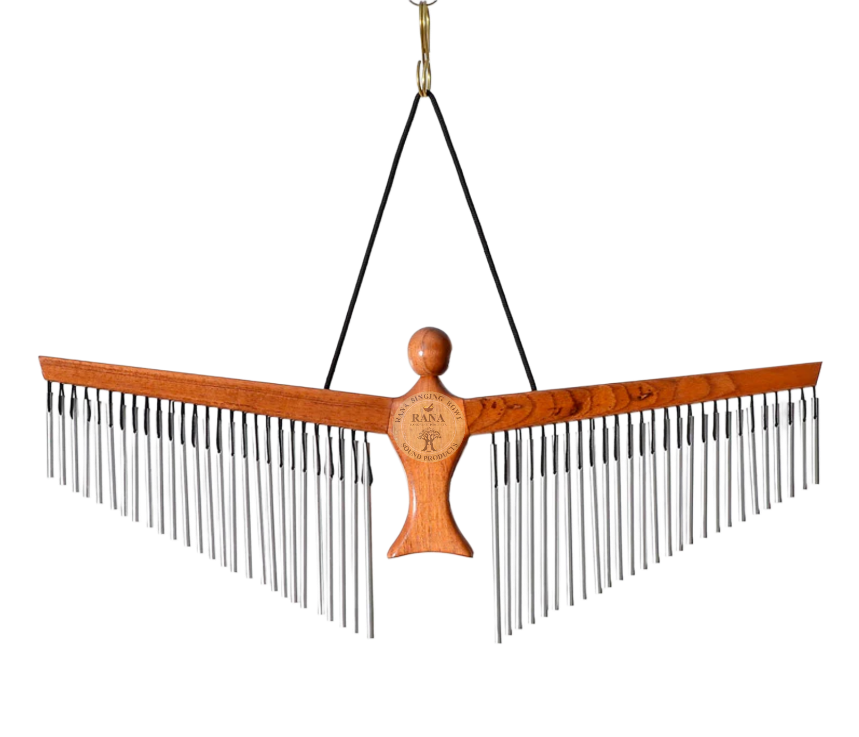 It is made of chime bars crafted from metal, typically aluminum or brass, for a resonant sound. The frame is usually wooden and often shaped decoratively, sometimes resembling a flying angel or bird. The bars are suspended using strong nylon or metal cords. Bar chimes are commonly used in jazz, orchestral, cinematic, or ambient music to add atmosphere and sparkling accents. They are also used in meditation, yoga, and sound healing due to their soothing, healing vibrations.